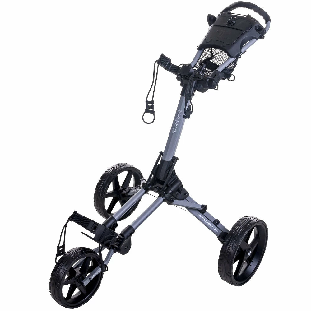 With 12” rear wheels and 9.5” front wheels, this trolley easily tackles varying terrain, its wide set wheel-base optimising stability for effortless course navigation. Handy features such as its storage net, tee, ball & mobile phone holder give it easy accessibility, while the bag bracket keeps your golf bag secure while on the move.