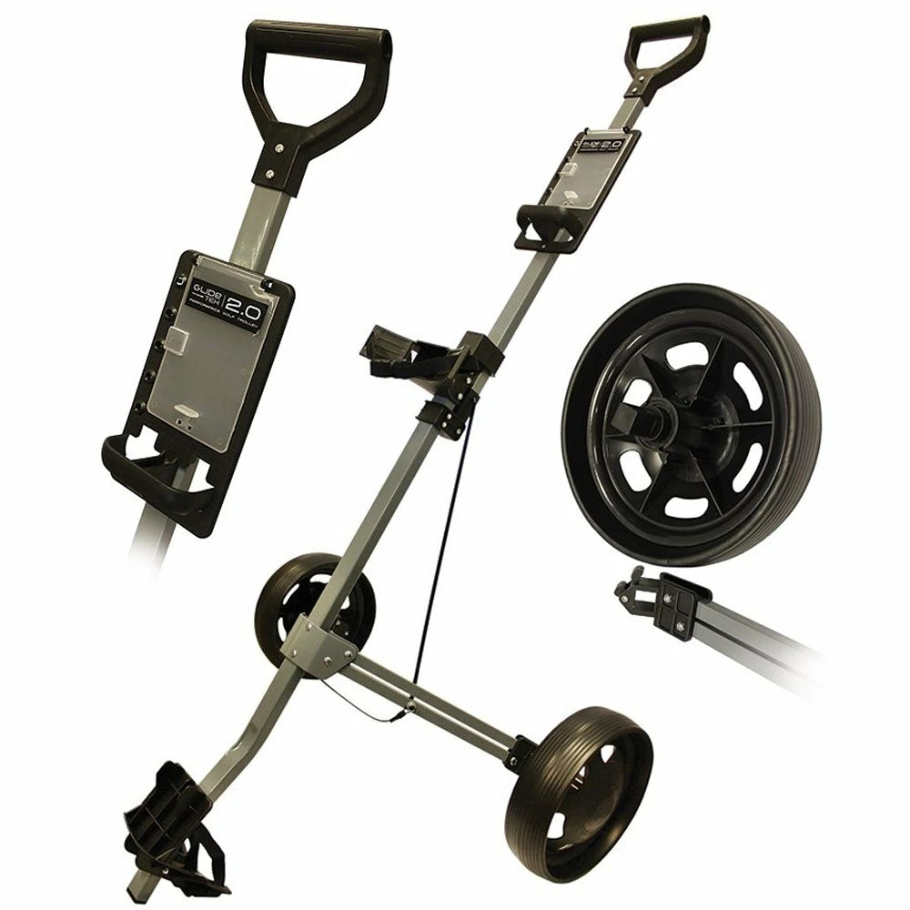 The 2-wheel design easily handles various types of terrain, with secure straps for your golf bag to ensure smooth operation in combination with an ergonomic handle for further comfort.