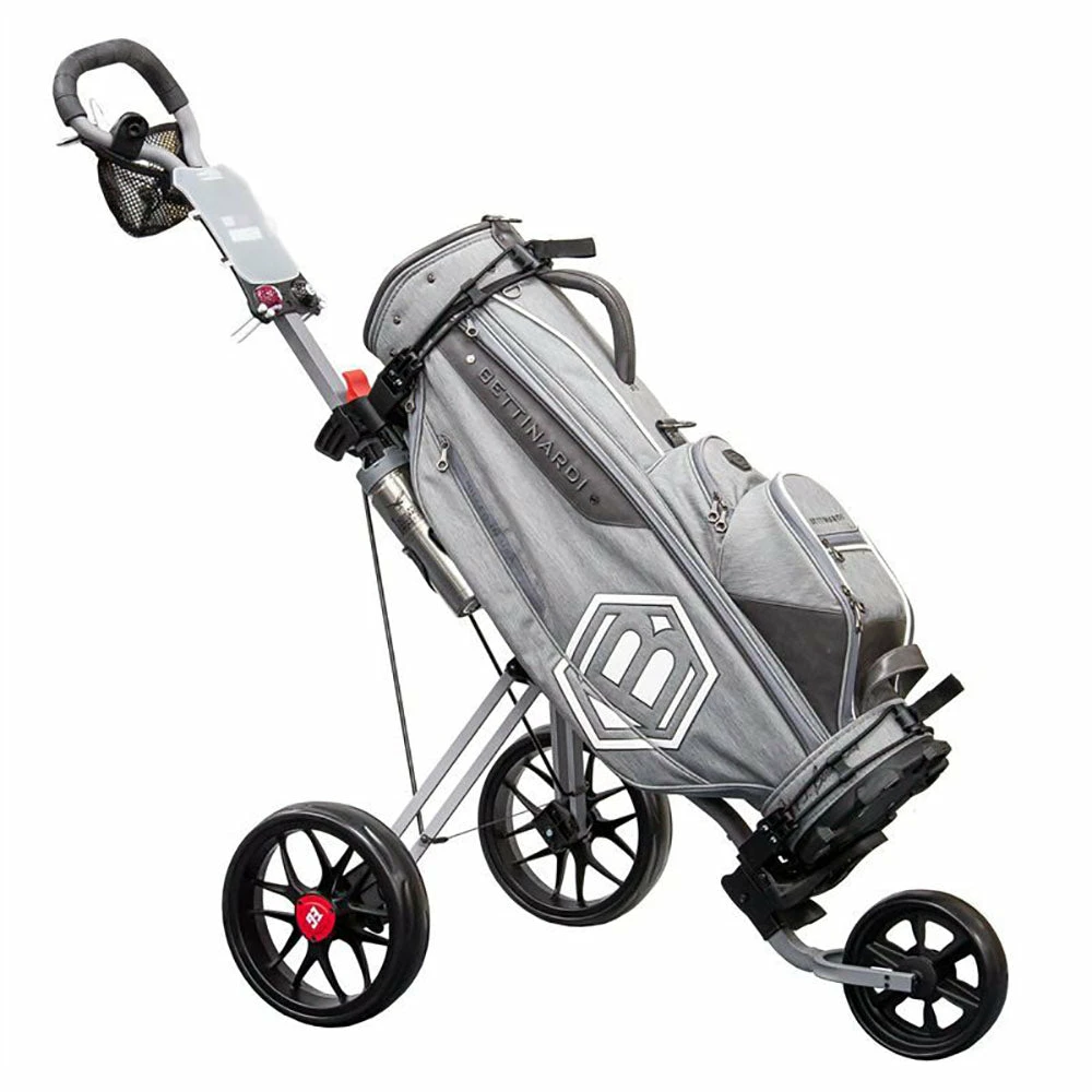 A Soft grip handle gives comfortable hold for all day use wit a handy footbrake to keep your trolley stationary when you come to the tee.