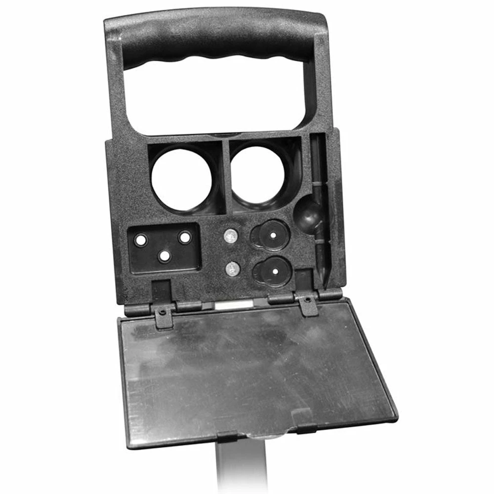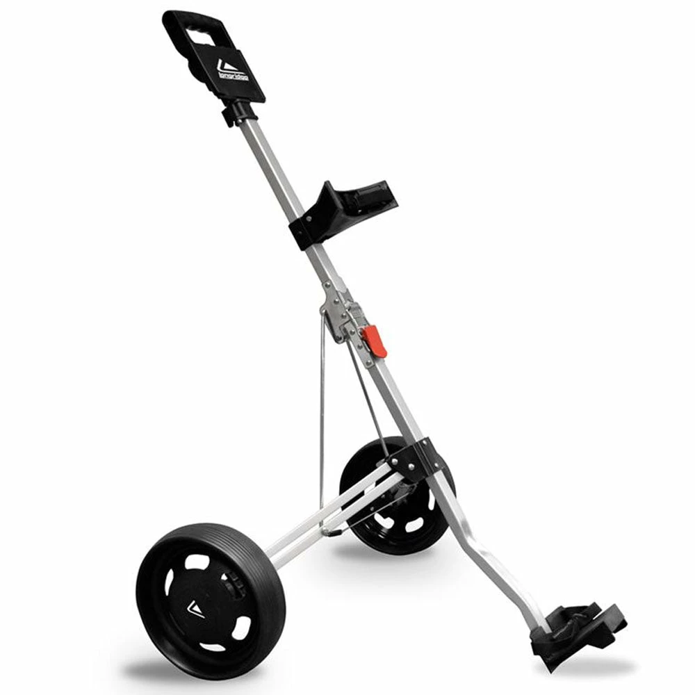 The trolley folds easily to an ultra-compact size that is ideal for storage and transport in small car boots. The trolley comes supplied with quick release wheels for easy storage and is fitted with a scorecard/ball and tees holder as standard.