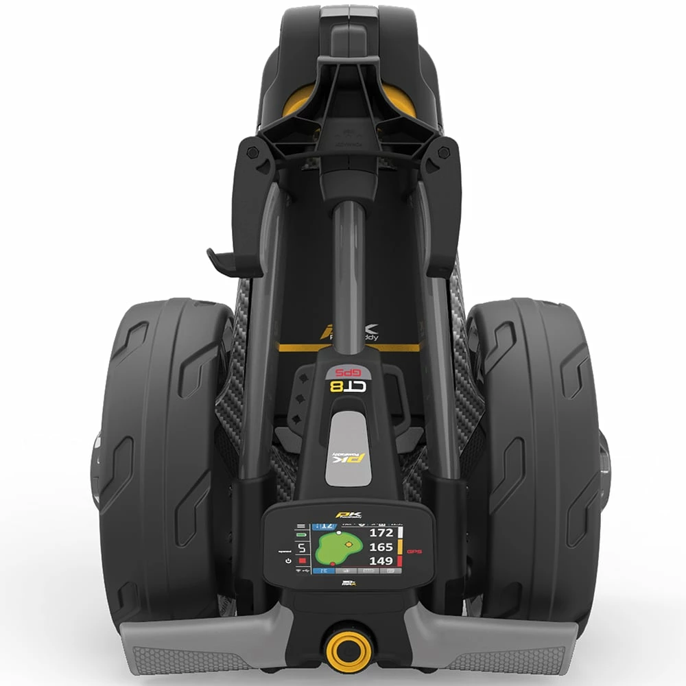 The all-new CT8 GPS affords golfers the opportunity to enjoy smarter power. This model boasts a fully integrated GPS, accessible via a new 3.5” TFT full-colour Touch screen widescreen display, making it the smallest, most intelligent ultra-compact golf trolley in the world.