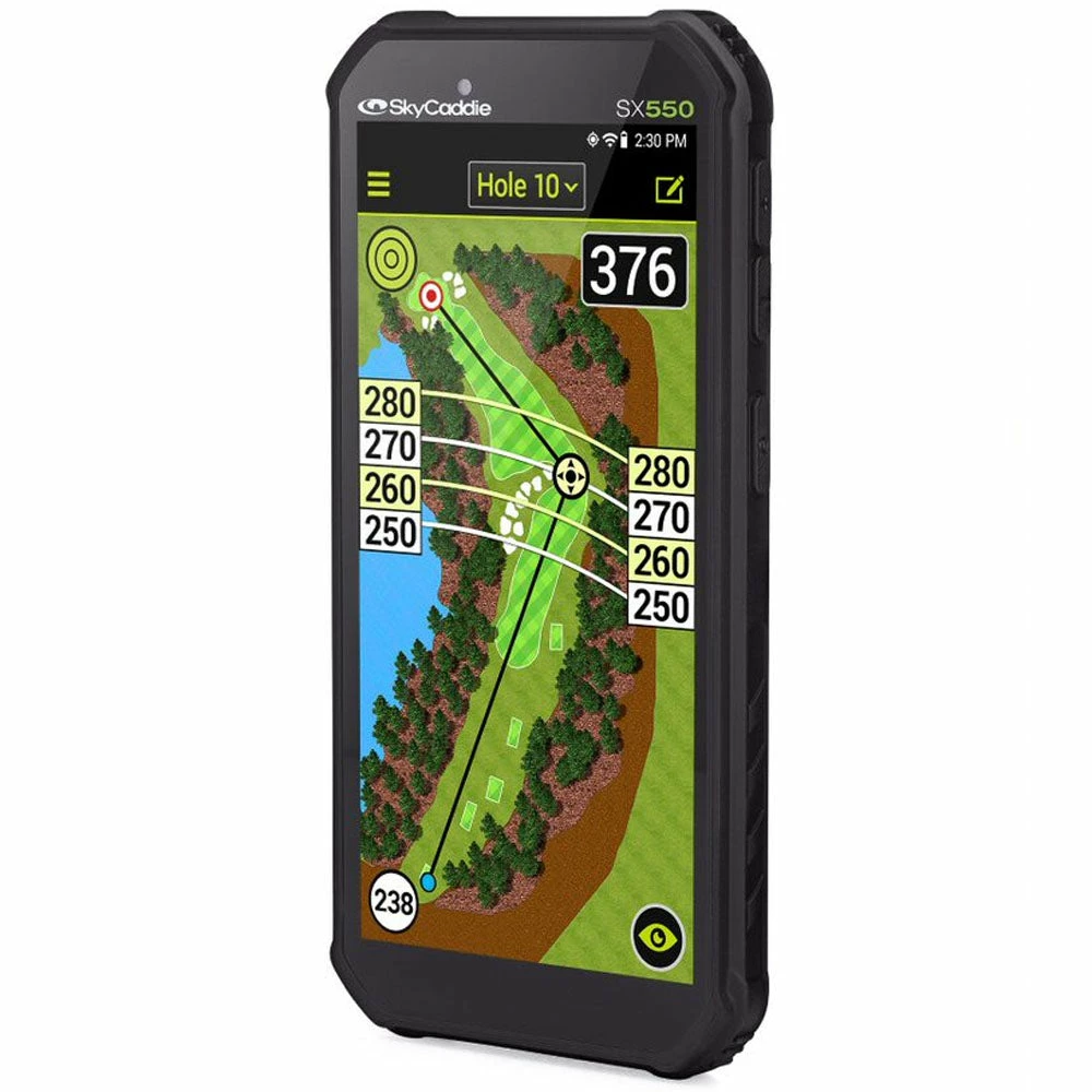 The SkyCaddie® SX550 has a slim feel with highly water-resistant design. With a large battery, the SX550 is ready for extended playing time for that emergency 9, or even 18 more holes. Using multi-constellation navigation satellite systems, the SX550 provides enhanced accuracy and overall better performance under tough conditions or tree cover.